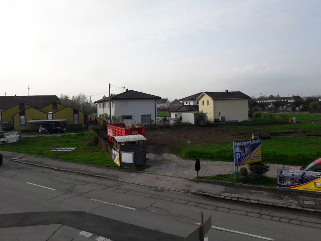 Auf unseren ehemaligen Parkplatz gegenüber unseren alten Ladens, startete im November 2018 die erste handwerkliche Handlung. Im linken hinteren Bereich unserer neuen Ladenfläche stand ein älteres, schon etwas heruntergekommenes Haus. Im November haben wir damit begonnen das Haus abzureisen.
