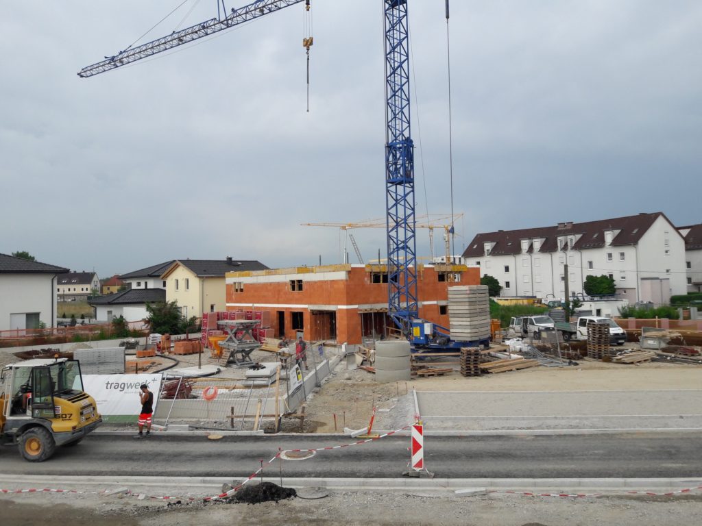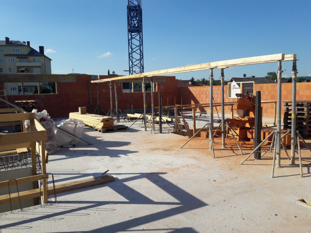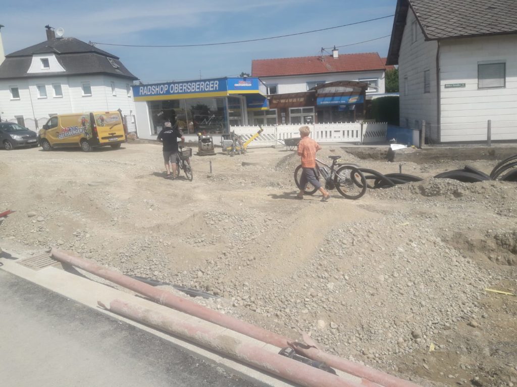 Mit dem Keller hatten wir etwas mit dem Grundwasser zu kämpfen, zum Glück jedoch kein unlösbares Problem. Der Keller wurde betoniert und der „Deckel“ darauf gesetzt. Die Handwerker konnten also mit dem Mauern beginnen. Ganze 4 Stöcke á 250 m² waren mit der „Ziegelstapeltechnik“ zu überwinden. Während des Bau wurden wir oft gefragt ob wir Wohnungen dazubauen, denn warum brauche ein Radladen ein solche großes Gebäude. Das mit den Wohnungen wäre eine gute Idee gewesen, allerdings hätten wir dafür wohl noch einige Stockwerke mehr benötigt. Denn viele übersehen die Lagerfläche die wir für unser umfassendes Sortiment benötigen. Bis auf das Erdgeschoss und den ersten Stock, auf welchen wir Werkstätte, Sozialräume, Fitnessraum und Zubehör- / Ersatzteillager eingeplant haben, wird der restliche Platz für die Lagerung von Rädern benötigt.