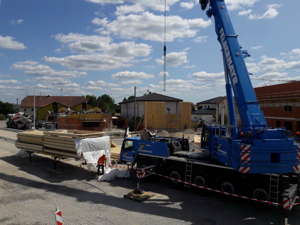 Das wohl wichtiges um Räder präsentieren zu können ist der großer Austellungsraum. Wir haben uns für einen natürlichen Werkstoff: Holz, entschieden. Also kamen im Juli große LKW’s mit riesigen Holzelementen. Der kolossale Kran hob die Elemente in die Position und innerhalb von 4 Tagen stand eine 600 m² Fläche überdacht einfach so da, als würde sie schon seit Jahren stehen.